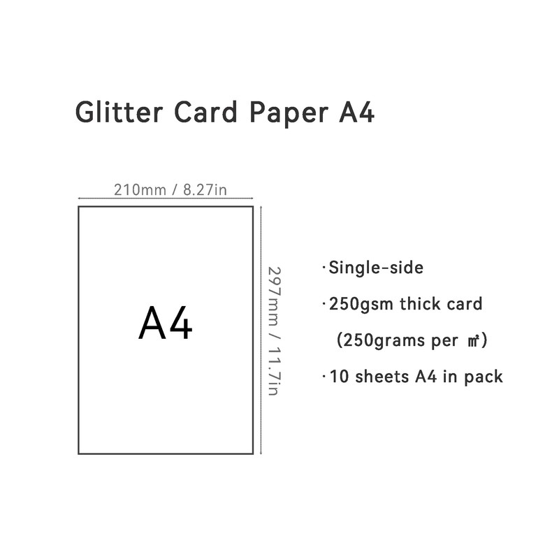 Glitter Card A4 250GSM 10 Colour Assorted 10 Sheets No Powder Card-Stock Paper Cardboard for Art Handicraft