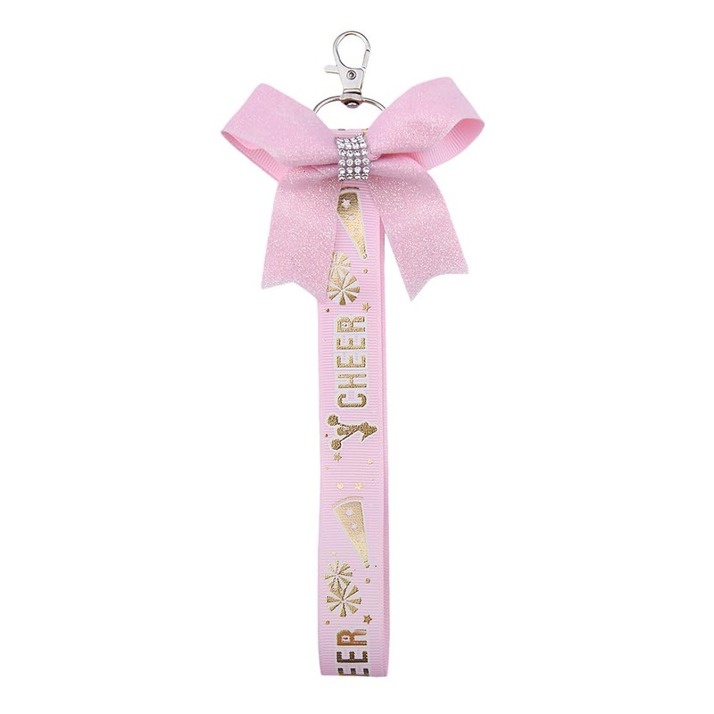 - Glitter Pink Cheer Pins Keychain for Bag Backpack: Wearing this glitter cheer ribbon will be a quick hit at every competition, getting your cheerleaders excited and to get out on the field and compete, they inspire motivation and team spirit among all cheerleader, perfect cheer bow bling keychains for women girls teens, glitter cheerleader bow charm keychain, rhinestones cheer keychain bow, cheer bag accessories for cheerleaders