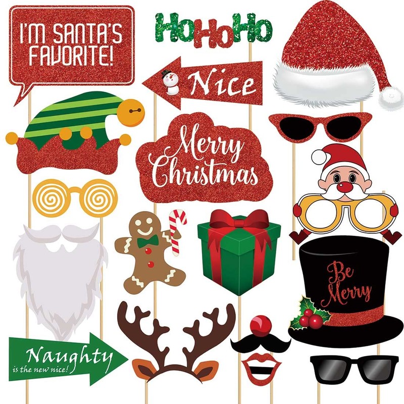 - Unique design: New design and exclusively sold. These props are Xmas hats, glasses, beards, gingerbread men, red lips, Merry Christmas signs, etc.
