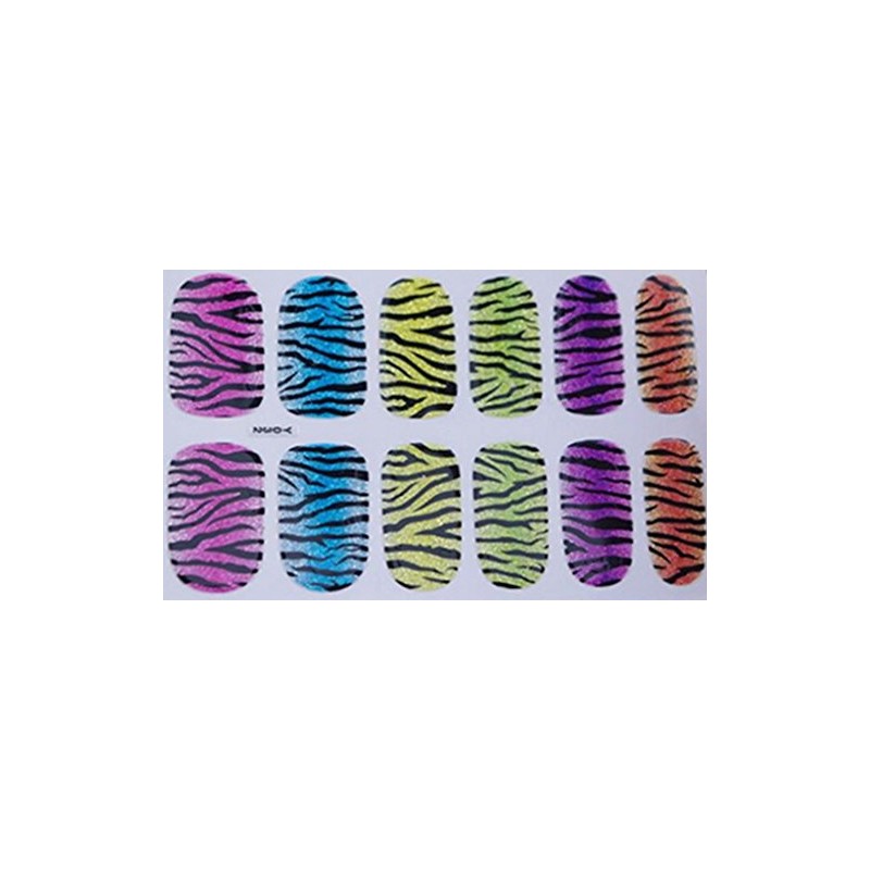 Glitter Colorful Wild Zebra Design Nail Wraps Decals Nail Art Transfer Stickers