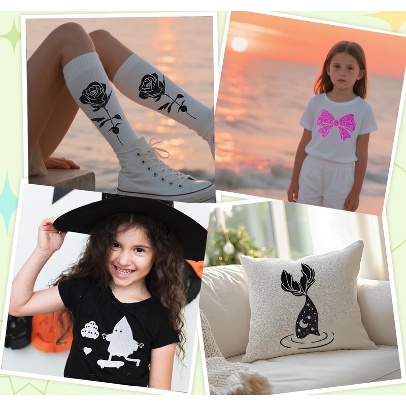 - 🎁Best HTV for Personalize Gift: Glitter heat transfer vinyl materials are SGS certified eco-friendly and safe to wear, with super elasticity and softness are perfect for decorating children's clothing and accessories. A Good choice for Christmas, Halloween and anniversaries gift to your family or lover. Who doesn’t love a fun new t-shirt? If this htv roll does not perform to your expectations, please don't hesitate to contact us.