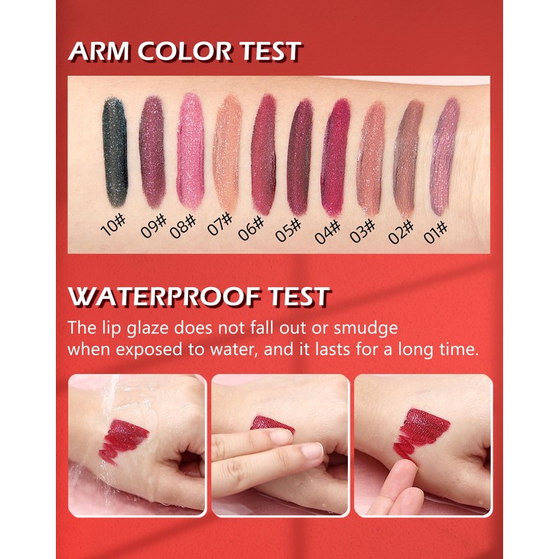 - LONG LASTING WATERPROOF NON-STICK CUP - Waterproof glitter liquid lip gloss with buildable full coverage that won’t stick to the cup, not fade and lasts all day. The high pigmented lipstick is perfect for working overtime, parties, or any occasion where you need your lipstick to stay put. (Tip: You need to wait 1-2 minutes for it to dry)