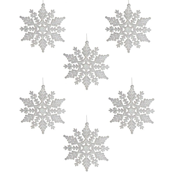 Glitter Snowflake Christmas Decorations Pack of 6-10cm Hanging Decorations (White)