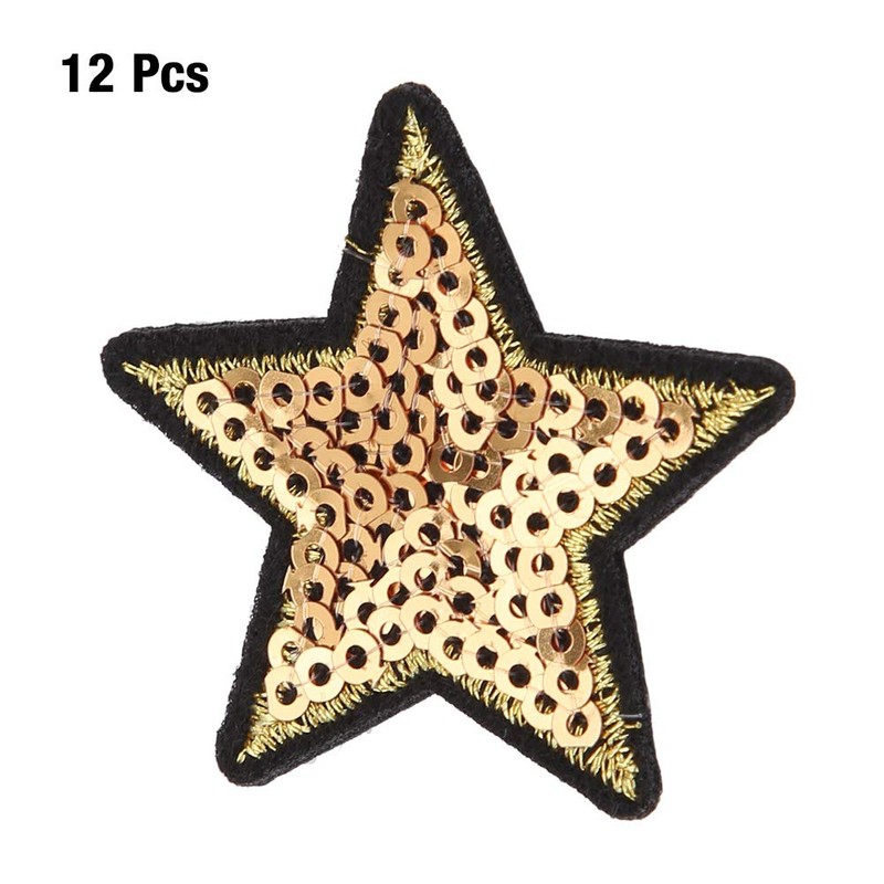 Glitter Star Patches,12pcs DIY Sequined Star Pattern Embroidery Sticker Clothes Patch Accessory