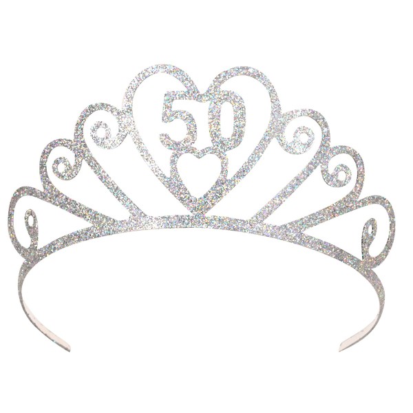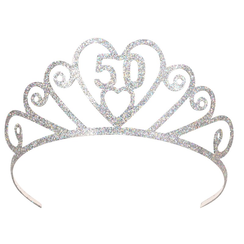 Beistle 60633-50 Glittered Metal "50" Tiara. This tiara is a must for the birthday person turning 50! The tiara is made of metal covered in silver glitter.