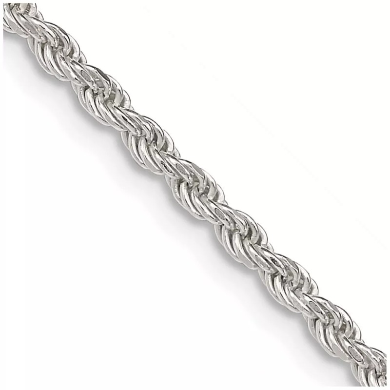 Material: Primary - Purity:925 | Finish:Polished | Length of Item:16 in | Chain Length:16 in | Chain Type:Rope | Chain Width:2.25 mm | Clasp /Connector:Lobster | Coating:Anti-tarnish | Feature:Solid | Manufacturing Process:Casted | Material: Primary:Sterling Silver | Width of Item:2.25 mm | Product Type:Jewelry | Jewelry Type:Necklaces | Sold By Unit:Each | Necklace Type:Chain Styles | Gender:Women's | Texture:Diamond-cut | Material: Primary - Color:White