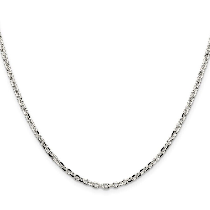 Material: Primary - Purity:925 | Finish:Polished | Length of Item:16 in | Chain Length:16 in | Chain Type:Cable | Chain Width:2.75 mm | Clasp /Connector:Lobster | Coating:Anti-tarnish | Feature:Solid | Manufacturing Process:Machine Made | Material: Primary:Sterling Silver | Item Weight U/M:gm | Width of Item:2.75 mm | Product Type:Jewelry | Jewelry Type:Necklaces | Sold By Unit:Each | Necklace Type:Chain Styles | Gender:Women's | Texture:Diamond-cut | Material: Primary - Color:White