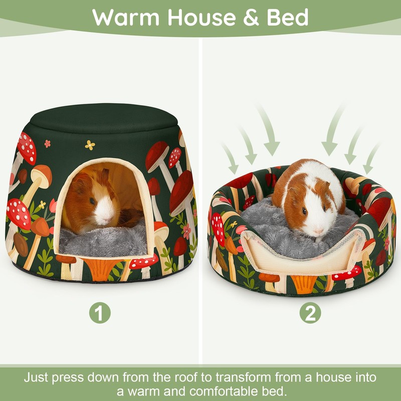 - 2-in-1 Guinea Pig Nest: This small animal bed provides a cozy enclosed space that they instinctively love to hide in and rest in; It can be used as a den for guinea pigs to hide in, and the roof can be flattened to serve as a bed for them to rest on