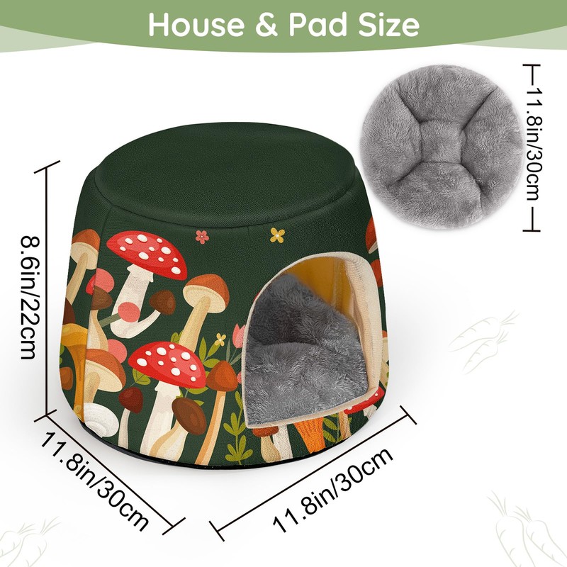 Glittme Guinea Pig Hideout, 2 in 1 Guinea Pig Bed with Removable Pad, Washable Bunny Bed, Foldable Guinea Pig Accessories for Guinea Pig Cages, Guinea Pig, Bunny, Hamster, Hedgehog, Rabbit,Mushroom