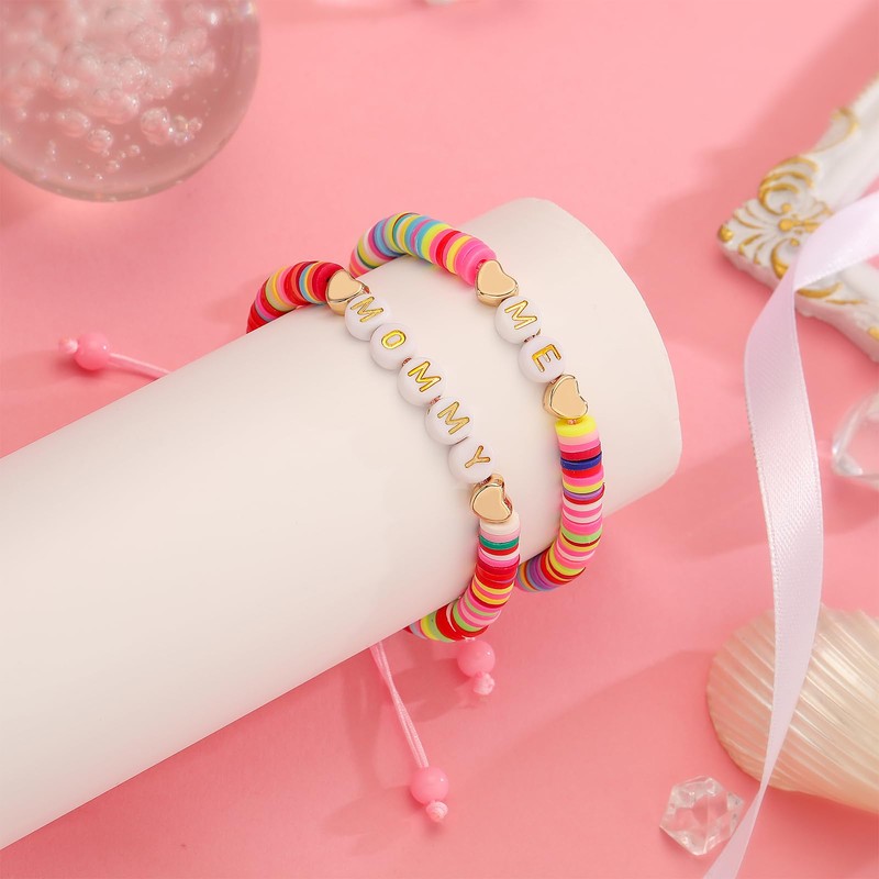 - Material: This mommy and me bracelets are made of colorful clay beads. The beads are lightweight, smooth, don’t irritate the skin, non-fade, waterproof, safe for wearing.