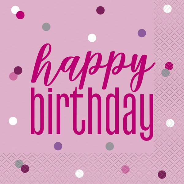 Glitz Pink & Silver Happy Birthday Luncheon Napkins (16cm) - Perfect for Parties - 16ct