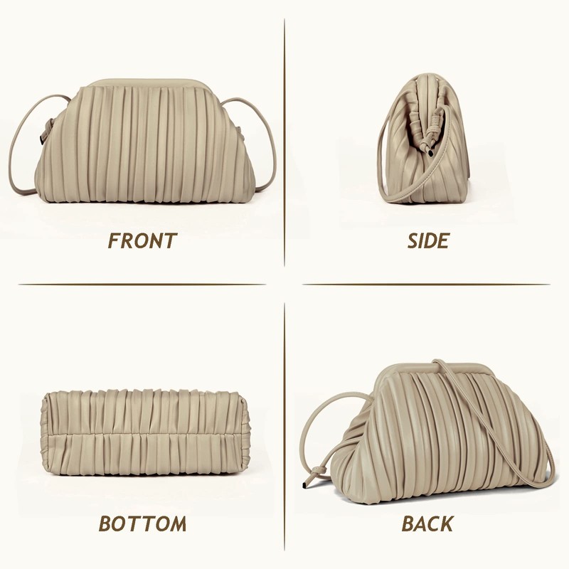 GLITZALL Clutch Purse and Dumpling Bag for Women Designer Cloud Handbag and Ruched Bag with Detachable Shoulder Strap,Soft PU Leather (Beige)