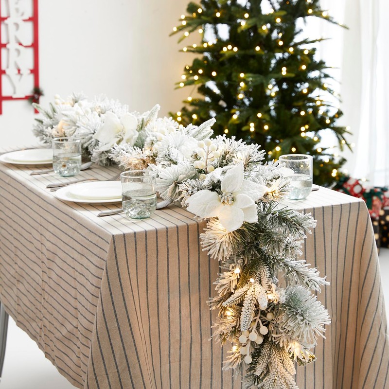 - 【GREAT FESTIVAL DECORATION】Each of the 134 tips is modeled to a pine tree's while the snow flocked design creates a winter wonderland around your home. White Berries and Poinsettia among the needles add an extra holiday touch to this garland. It creating the perfect holiday touch for your home.