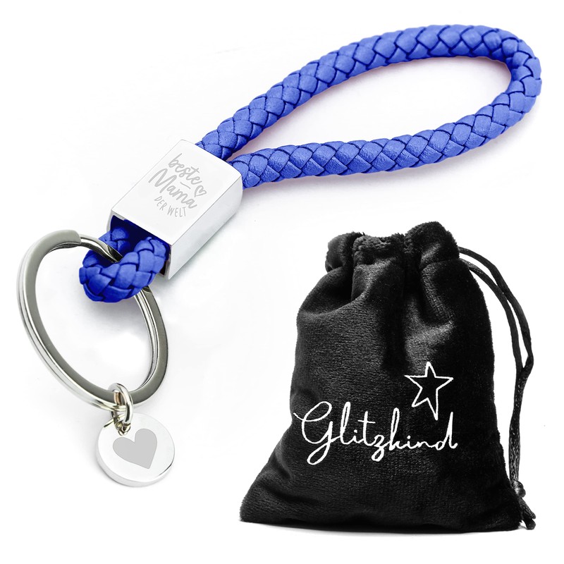 Glitzkind Keyring with Engraving for Mum, Grandma, Dad, Girlfriend, Heart Pendant Gift for Mum, Mother's Day, Birthday, Christmas, Key Ring, Car Key, Silver, blue, Einheitsgröße