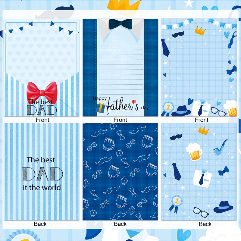 - Each sheet stationery letterhead paper features various Father's Day-themed designs including hats, beards, glasses, and ties, allowing for creative and festive displays.