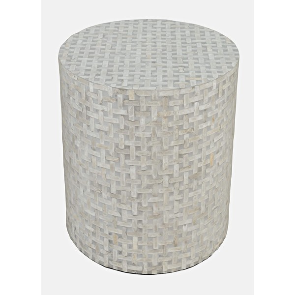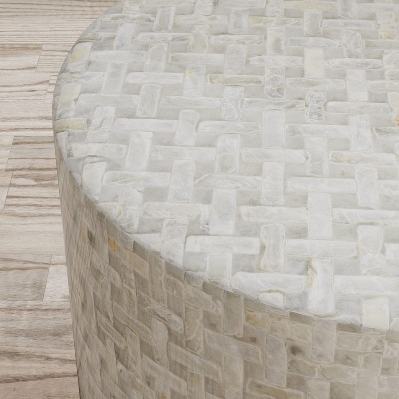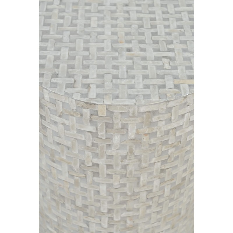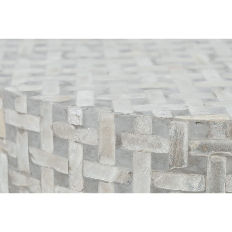 Global Archive Handcrafted Capiz Shell Terrazzo Modern Accent End Table Grey Basketweave