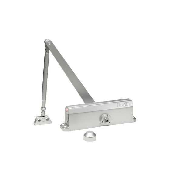 Global Door Controls Compact Commercial Door Closer in Aluminum with Adjustable Spring Tension - Sizes 1-4