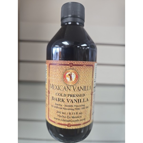 Enjoy the rich and authentic taste of Mexican Vanilla, perfect for adding a touch of sweetness to your favorite recipes. This 8.11oz bottle by Global Goods is a must-have for any pantry, and is ideal for use in a variety of dishes, including cakes, cookies, and even savory meals.