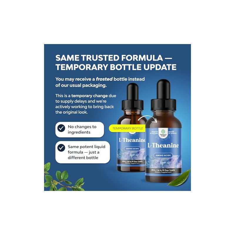 - teanina, elaborada a partir de extracto de té verde de alta calidad, está diseñada para promover la relajación y mejorar la concentración mental, lo que le proporciona una solución natural para su bienestar. Con nuestras gotas líquidas de L