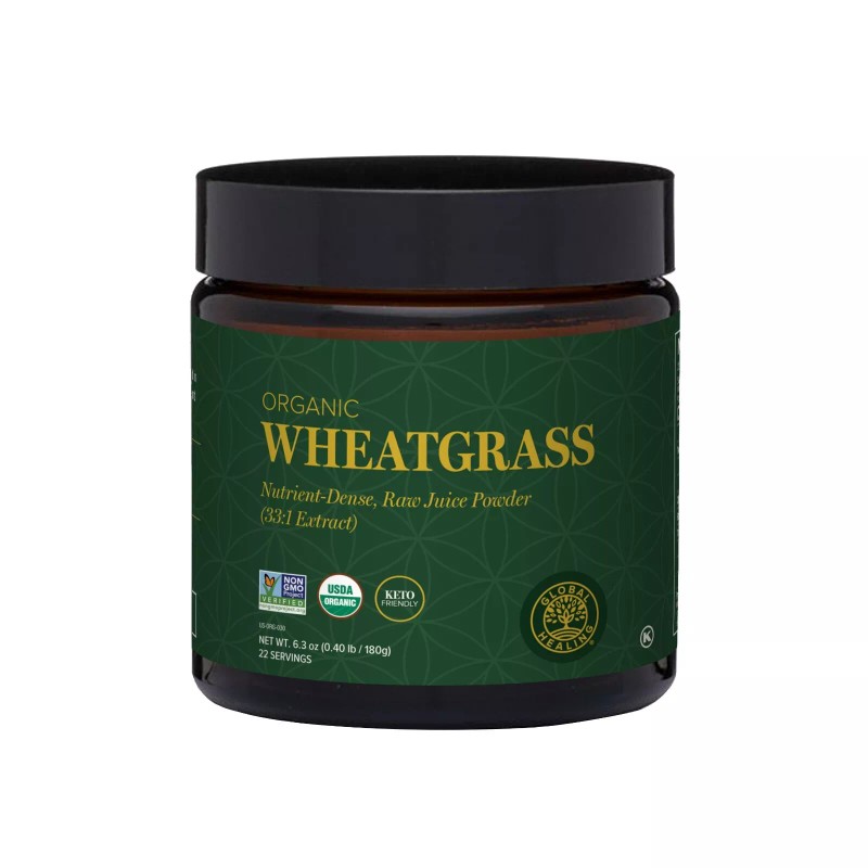 Our commitment to quality begins with hand-harvesting young wheatgrass at the pinnacle of their life force, ensuring optimal potency. The sprouts are cold-pressed and dried with low-temperature air steam, then we use a cold extraction process to distill the healing power of wheatgrass. These heat-free methods preserve the micronutrient profile for maximum healing potential in every bright green scoop. Our Organic Wheatgrass supplement offers superior bioavailability and efficacy with an unparalleled concentration ratio of 33:1. Proudly Organic, Non-GMO, and Additive-Free – Wheatgrass is well deserving of the Global Healing Gold Seal.