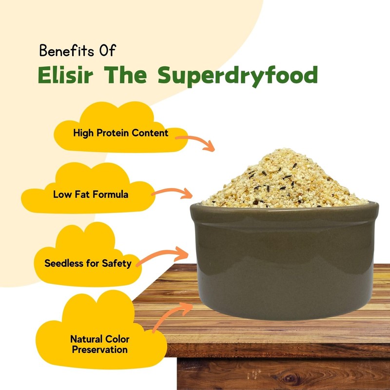 - Elisir is not a food that can replace seeds but it can be supplied in a balanced way throughout the year.
