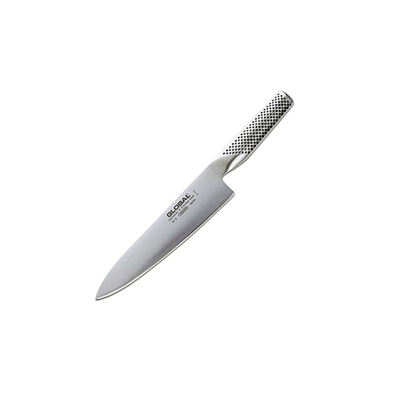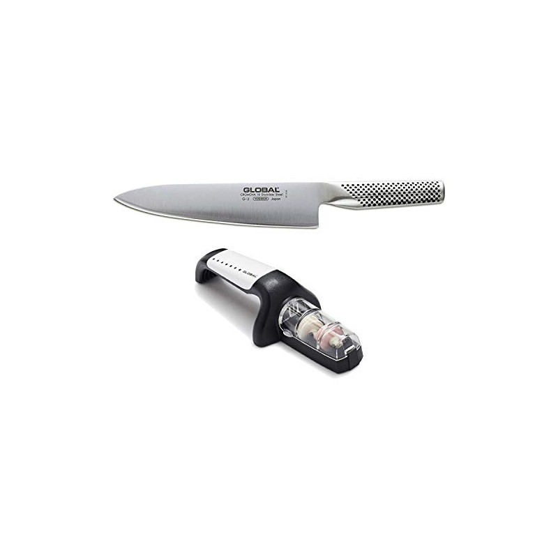 Global Stainless Steel 8-Inch Chef`s Knive with 2-Stage Handheld Knife Sharpener G-91 (White)