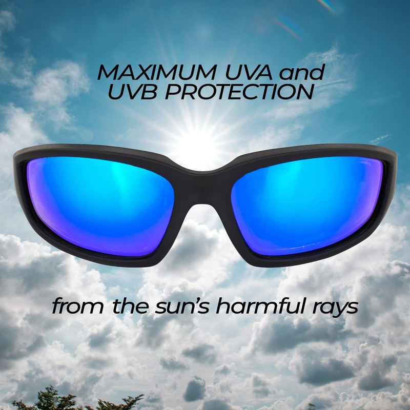 Global Vision Kickback Motorcycle Riding Sunglasses Black Frame w/Gtech Blue Lenses, Black, ADULT