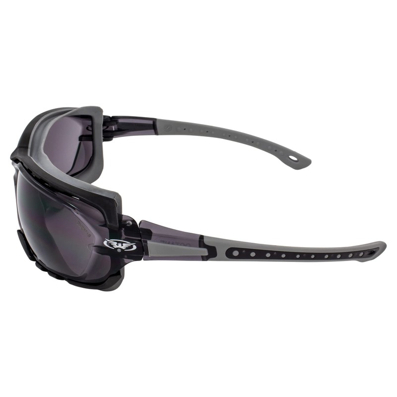 Fuel your fun at every level and every speed when you wear a pair of Global Vision Octane Padded Motorcycle Riding Safety Glasses with Rubber-Injected Gasket. This set features 1 pair of smok elenses with grey gasket seals and 1 pair of smoke lenses with orange gasket seals. Whether you're on the road or on the job, these glasses give you the performance and protection you need, and true to their name, step it up a notch with additional features like rubberized stems and a unique removable black gasket around the lenses. The removable rubber gaskets, double injected with rubber, seals to the contours of your face, giving you complete protection from wind, dust, and airborne debris that can hamper your vision. Double-injected rubber nose pads provide custom comfort and grip while a removable cord fitting on the ends of your glasses provides further insurance that your glasses will stay in place. Unique single-lens design features shatterproof polycarbonate anti-fog and scratch-resistant lenses. Glasses meet or exceed ANSI Z87.1 safety requirements. Smoke lenses are ideal for full-sun conditions and provide 100% UVA and UVB protection. Keep your eyes on the road and the task at hand. These glasses do the rest.