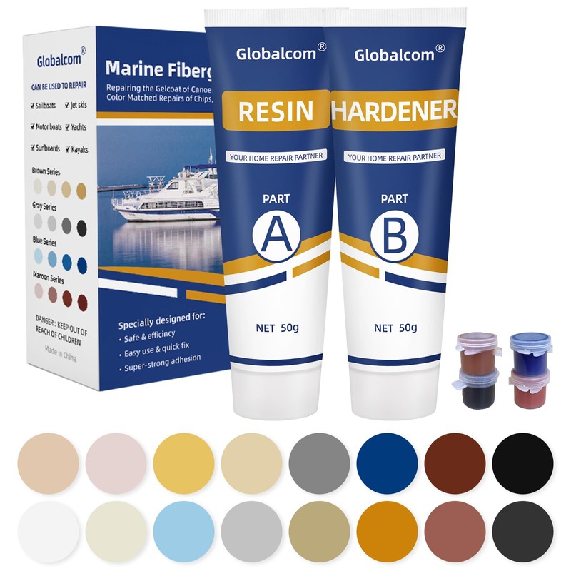 Globalcom Fiberglass Boat Repair Kit, (Color Match) Gel Coat Repair Kit for Boats, Marine Fiberglass Repair Kit for Boats, Epoxy Filler for Boats, Fiberglass Repair Kit Fix Holes Chips Pit Cracks