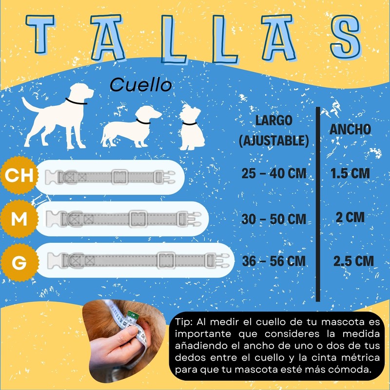 - [Apto para cualquier raza de perro o gato]: Contamos con una gran disponibilidad de tamaños si tú raza de perros es pequeña, mediana, grande o extra grande, inclusive para gatos u otras mascotas nuestros collares serán funcionales, recuerda medir a tu mascota antes de ordenar, así te asegurarás que estás llevando la talla que le brinde comodidad total a tu mascota.