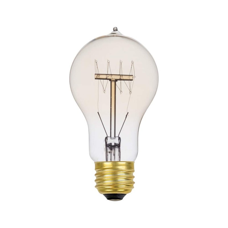 Globe Electric's Incandescent vintage designer 60W Vintage Edison A19 Quad Loop Incandescent Filament Light Bulb with E26 base. In the early days of electrical lighting, inventors such as Thomas Edison tested and retested as they searched for long-burning filaments. In 1890, the filament choice was carbonized cotton. Globe Electric’s bulbs have a tungsten filament, which is used to reproduce the single hairpin loop of a vintage design. Position it within a clear shade or exposed socket to enjoy its shape and ambient glow. This Edison inspired bulb is a Steampunk favorite with its glowing cage-shaped filament surrounding a central glass support. Crafted to preserve the look of early 20th-century lighting. Please note, these bulbs are not as bright as modern bulbs of the same wattage and are recommended for exposed socket fixtures. Glass has a goldish amber tint which can vary in degree from light to medium. These bulbs can be dimmed and have a lifespan of 3000 hours.