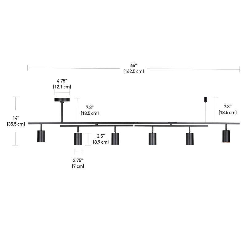 Globe Electric 59829 "West 64"" 6-Light Track Lighting, Matte Black, Center Swivel Bars