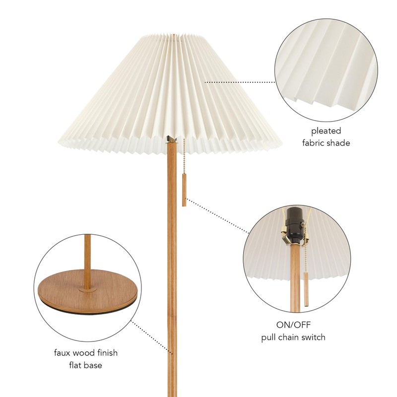 Globe Electric 61000053 62" Floor Lamp, Faux Wood Finish, Pleated Fabric Shade, Flat Base, Pull Chain Switch on Socket, Reading Lamp, Home Office Accessories, Home Décor, Home Improvement