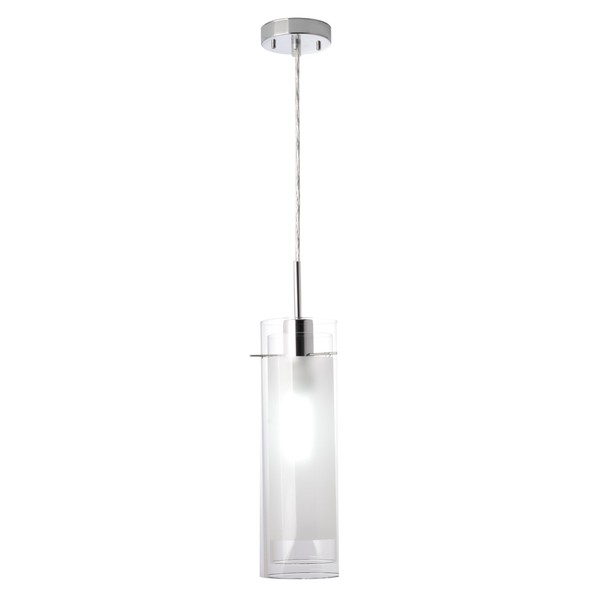 Globe Electric 64023 1-Light Pendant, Polished Chrome Finish, Clear Glass Shade with Frosted Glass Insert, Pendant Light Fixture, Adjustable Height, Light Fixture Ceiling Hanging, Bulb Not Included