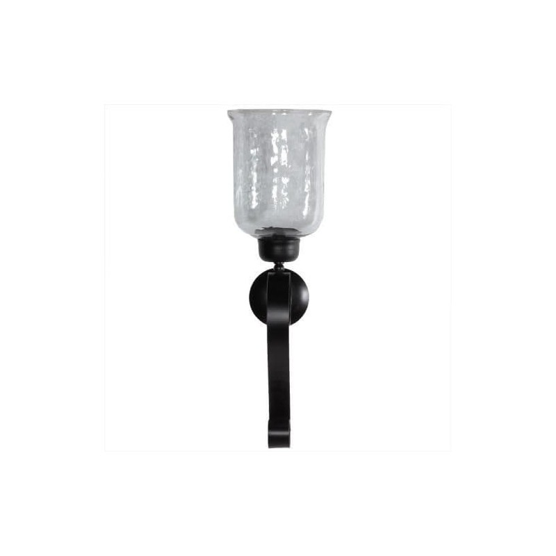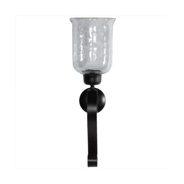 GLOBEDECOR Metal Wall Sconce Pillar Candle Holder Scroll Design with Tanslucent Hurricane Chimney 23" H