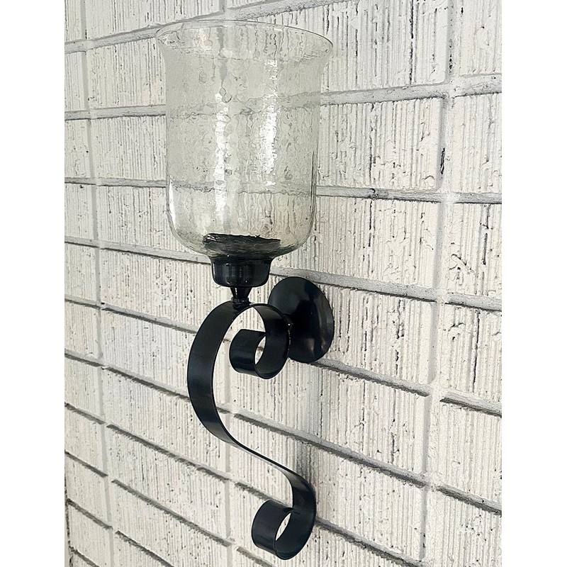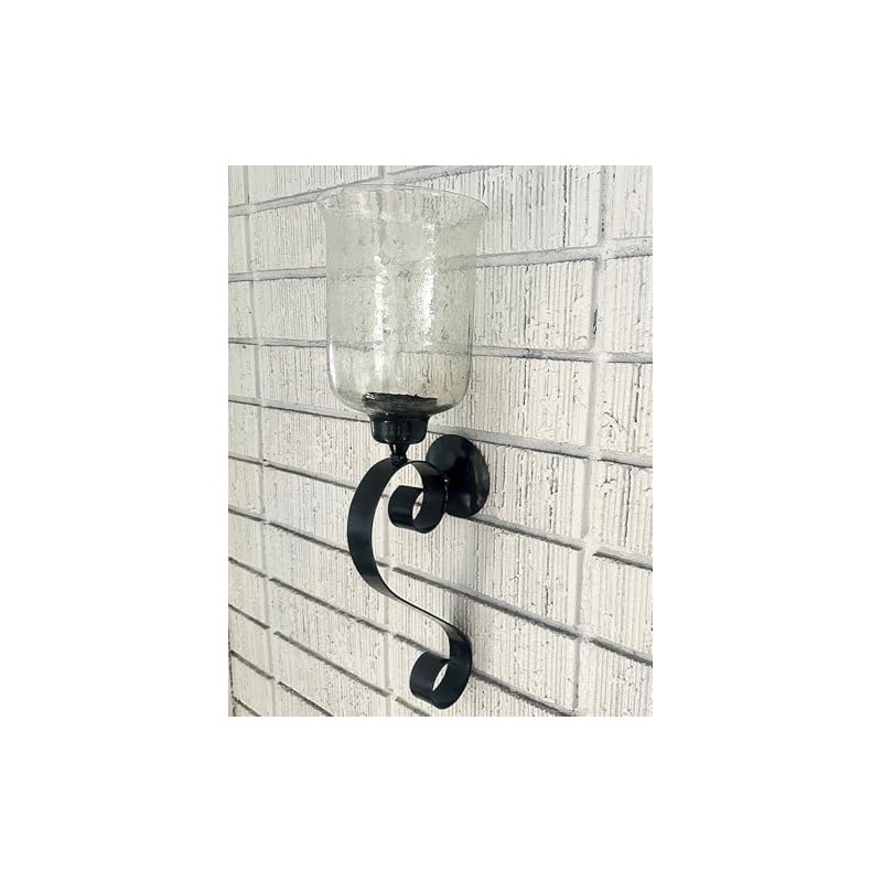 GLOBEDECOR Metal Wall Sconce Pillar Candle Holder Scroll Design with Tanslucent Hurricane Chimney 23" H