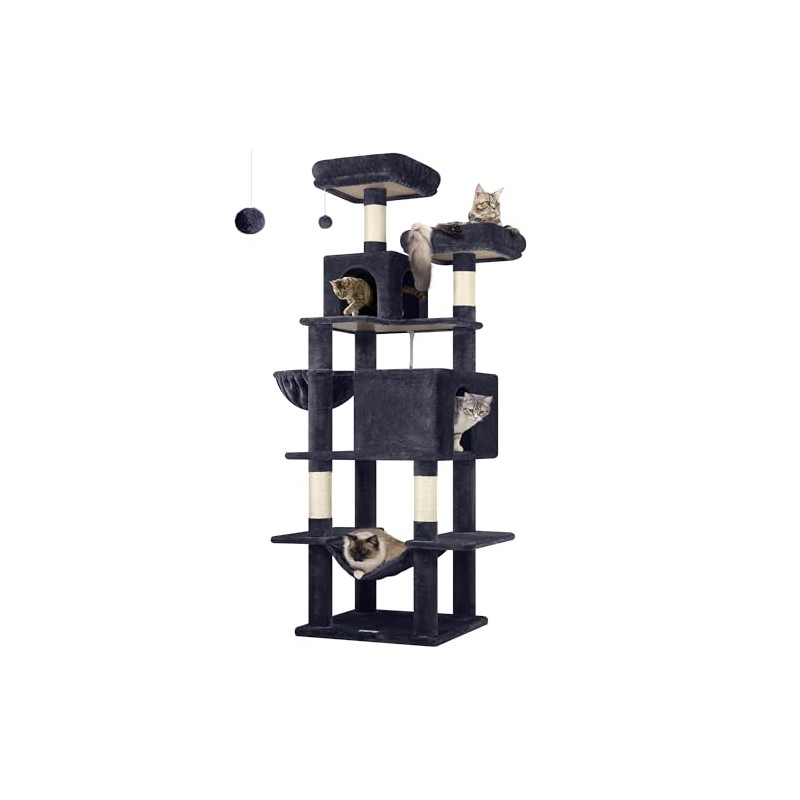 Globlazer Cat Tree Tower, 76-Inch Extra Tall Multi-Level Cat Furniture with Cozy Condos, Hammock and Perches for Adult Cats, Perfect for Climbing, Scratching, and Play, F76, Dark Grey