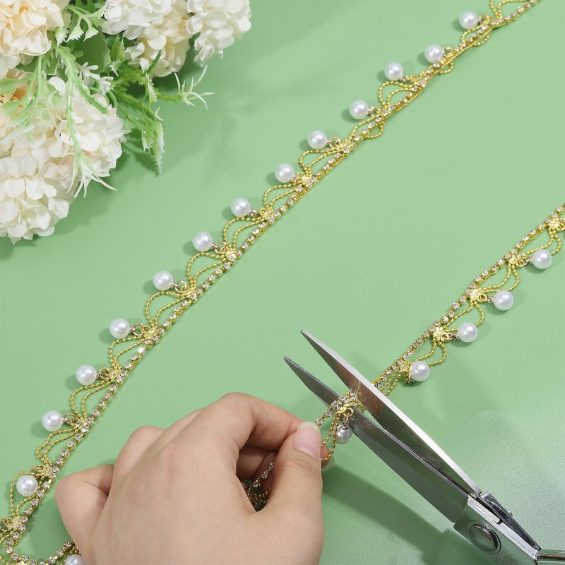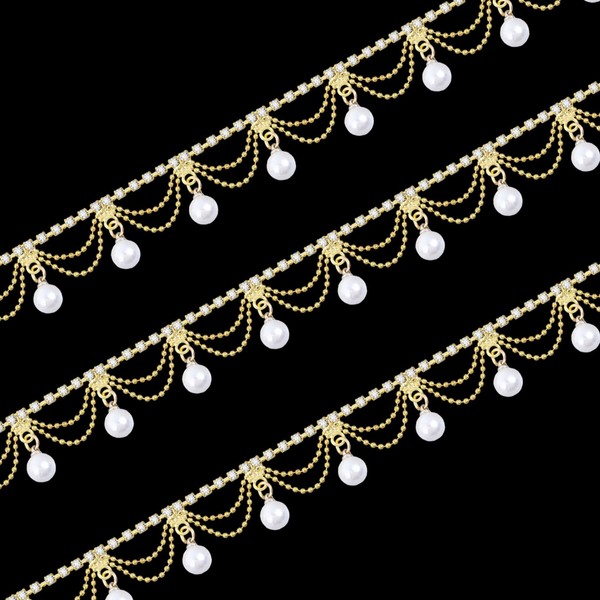 - Pearl Rhinestone Tassel Chain: 1 pc pearl rhinestone tassel chain, about 1Yard/36 inch in length, about 20mm/0.78inch in width. Suitable length can meet your various decorative needs.