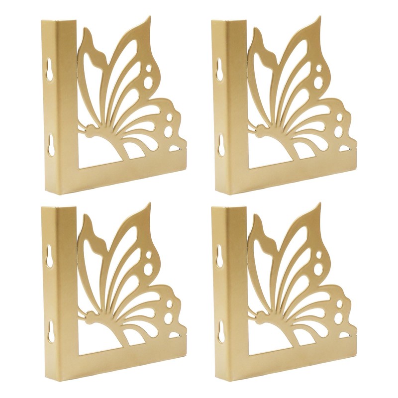 GLOBLELAND 4 Stück Gold Schelfbrackets 4,6 Zoll Eisen Schmetterling Dekorationsschelfbrackets Heavy Duty Antik Metall Floating Storage für Wand Küchenzimmer Dekorationsregal Schelfen