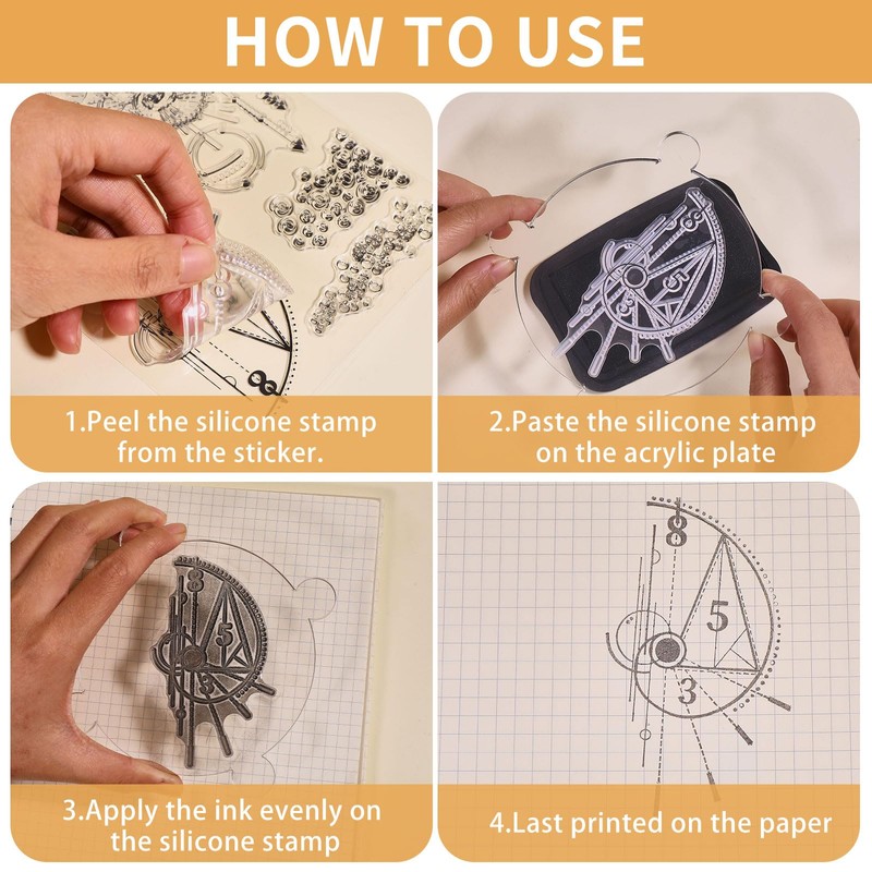 - How to Use: Select the transparent stamps you want, put the stamps on the acrylic block (not included), select the color craft ink pad you like (not included), and then print the dyed stamps on the handicrafts you need to decorate, and finally dry them to get a beautiful work.
