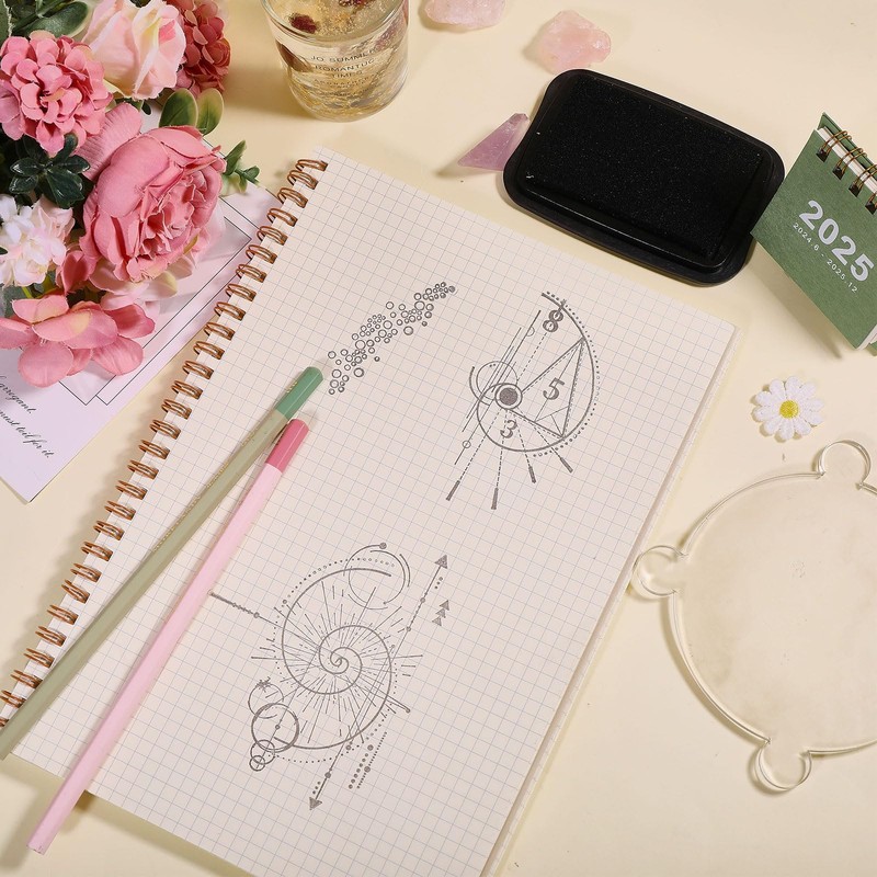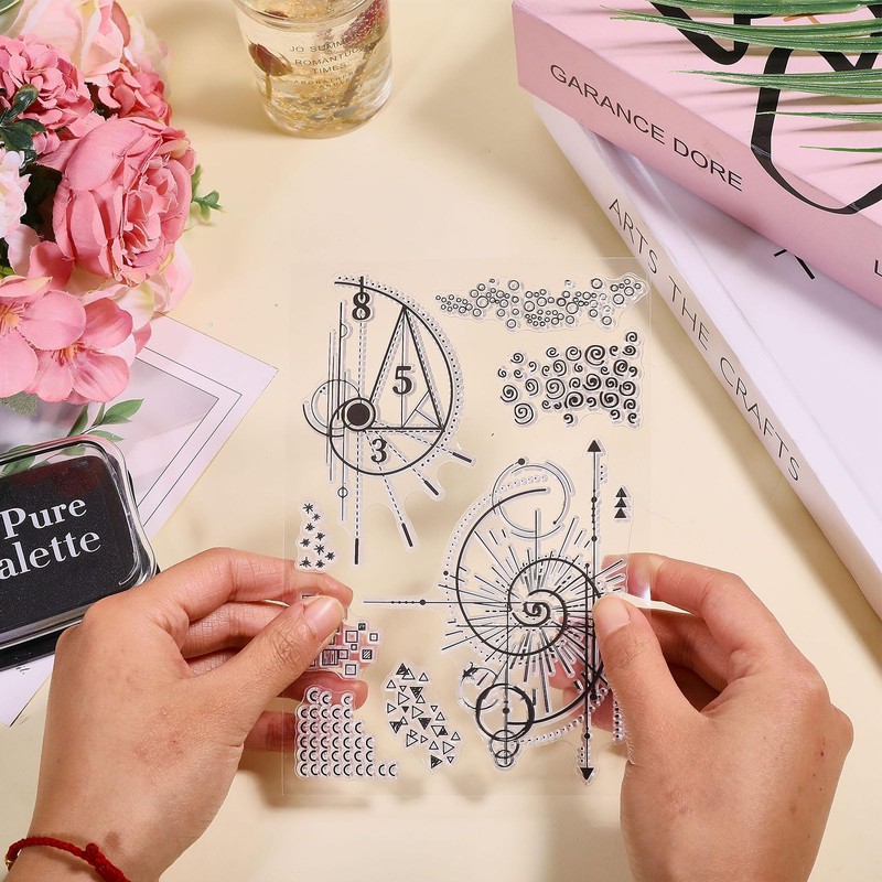 - Fibonacci Background Stamps: These clear stamps use shapes generated by the Fibonacci series with polka dots, triangles, semicircles, squares, spirals, and other background elements for a scientific style and unique creativity for greeting cards, envelopes, scrapbooking, daily notes, postcards, and other crafts.