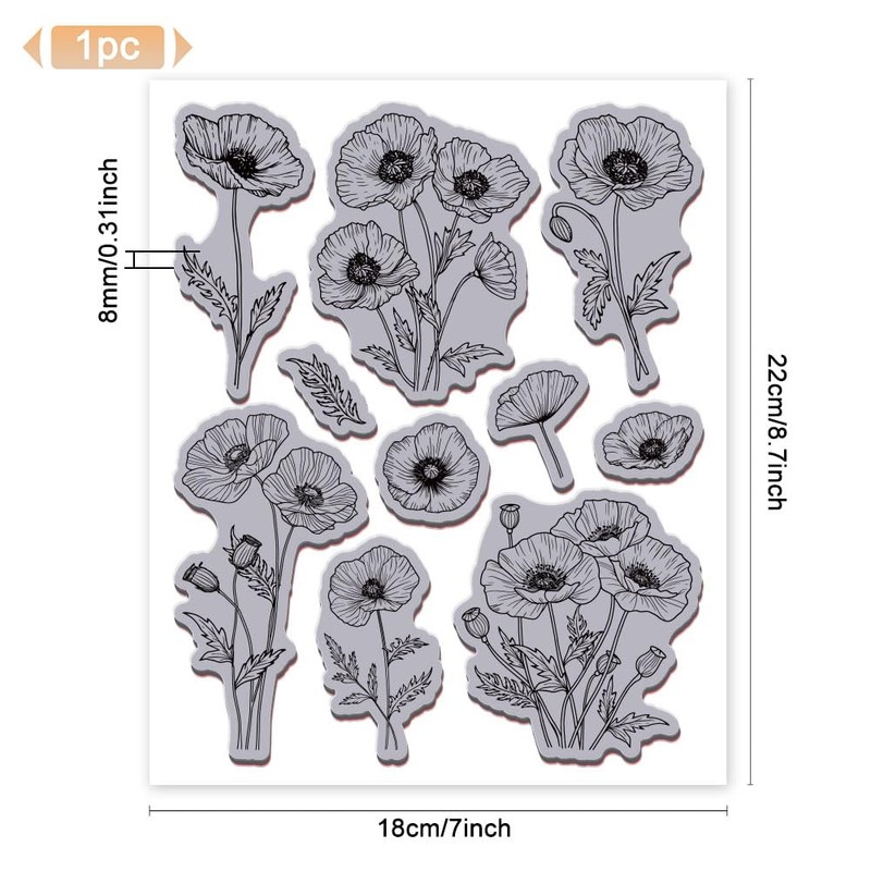 - Poppy motif: the size of the stamp is 180 x 220 mm / 7.09 x 8.66 inches. This stamp features poppy patterns, making it perfect for decorating handmade work such as greeting cards and scrapbooks.