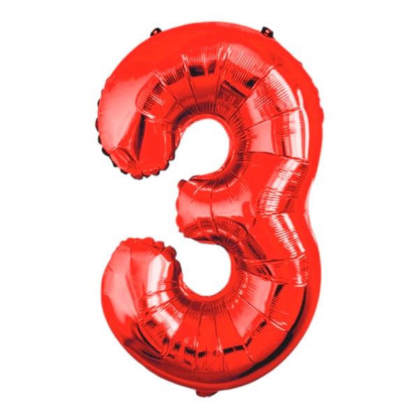 Globo 32'' Número 3 Rojo Grande Metálico 80 Cm Red