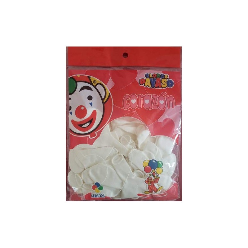 GLOBO CORAZÓN BLANCO 10x10"/25x25CM PAYASO BOLSA CON 50 PIEZAS