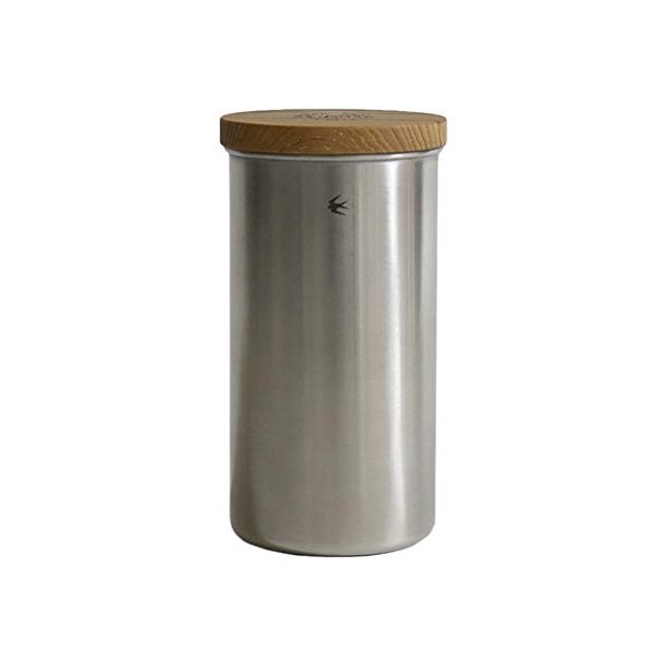 This long stainless steel canister is made in Tsubame, Niigata Prefecture, a place of metal processing. The teak wood lid combines a beautiful stainless steel hairline with a resin seal for a secure seal.