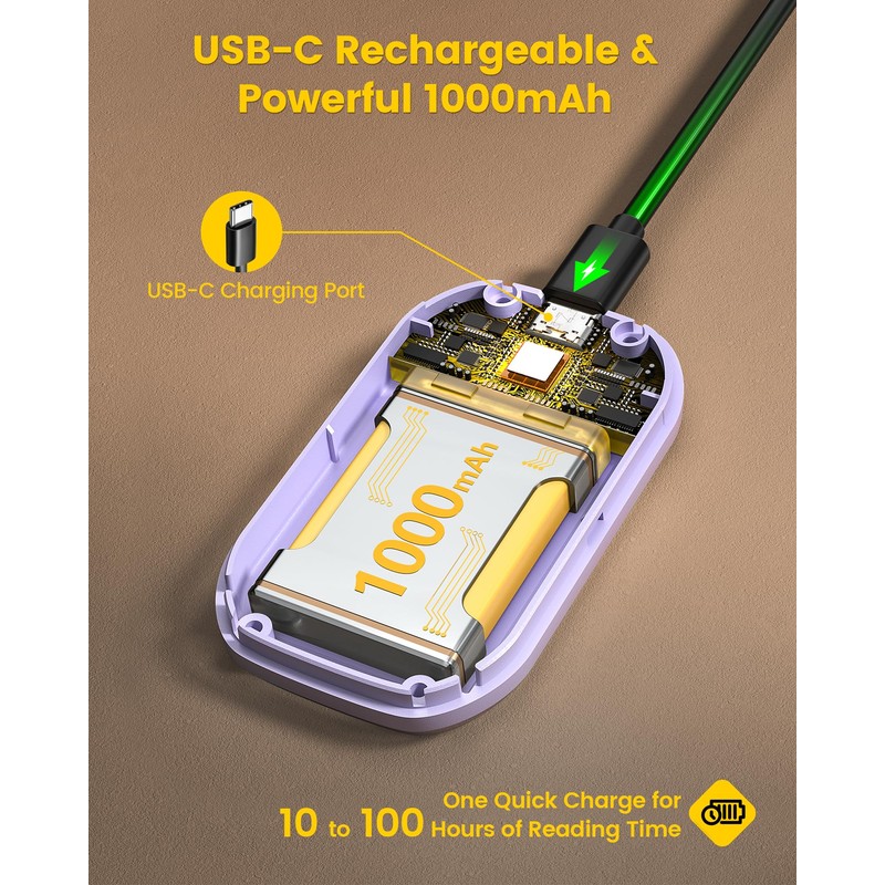 Glocusent Glocusent Innovative Tri-Head Leselampe Buch Klemme, 3 Farben & 5 Helligkeitsstufen, 1000 mAh Aufladbare Buchlampe mit 30-Minuten-Timer, 10 bis 100 Stunden, Perfekt fr Buchliebhaber