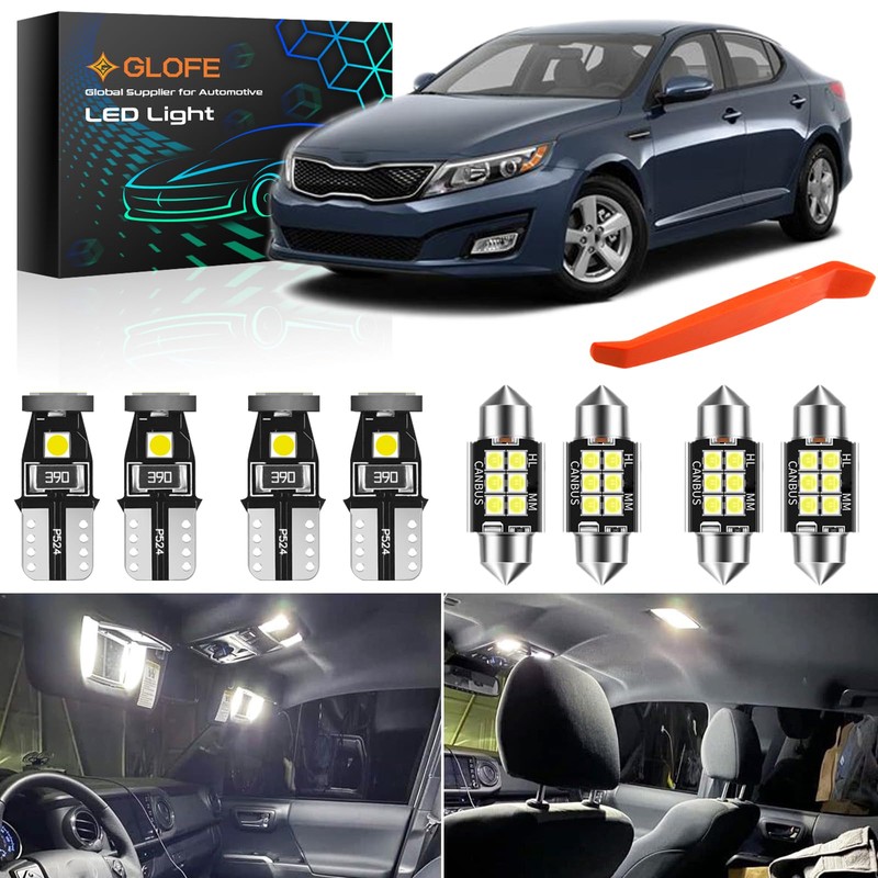 GLOFE White Interior Map Dome LED Bulbs Kit Package Replacement for Kia Optima 2016 2017 2018 2019 2020 6000K Trunk Light, Vanity Mirror Lights, License Plate Lights + Free Install Tool