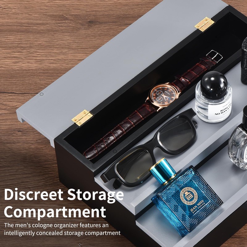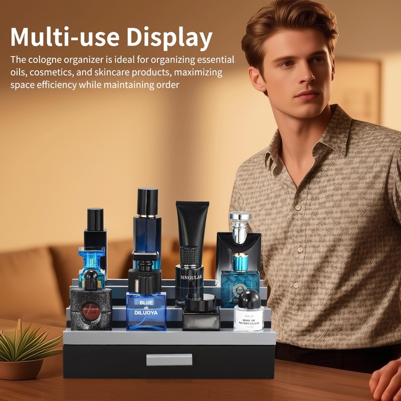 - 【Exquisite Mens bedroom Decor 】The practicality and aesthetic appeal of bedroom decor for men seamlessly blend together. The multi-layered design of perfume display elevates perfume presentation. Every level of perfume stand for men can hold a number of bottles, enabling you to exhibit your individual taste in fragrances. Whether on your bedroom dresser, bathroom counter or office desk, the shelf with hidden compartment versatility fits various settings effortlessly
