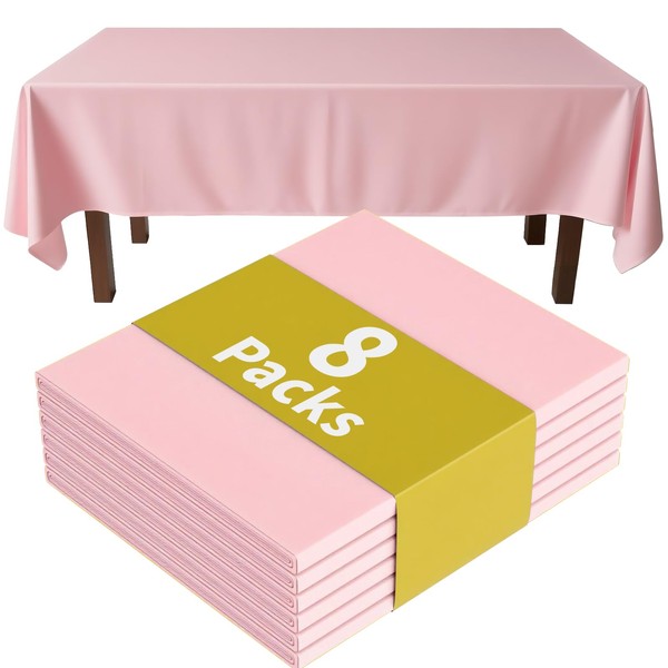 Glomii Plastic Table Cloth Disposable 8 Pack, 137 x 274cm Rectangle Waterproof Plastic Table Cover for Wedding, Party, Picnic Decorative Tablecloths, Leakproof & Sturdy, Pink.