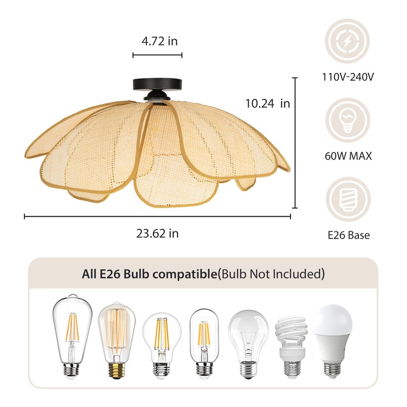 - 💡【Unique Design】:The rattan light fixture is made of the hand woven natural rattan and durable metal.Show bohemian style.A perfect blend of natural elements and handcrafted art.Creating an primitive romantic and cosy atmosphere for your home.